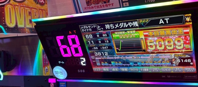 この日ナンバーワンとなったのが『パチスロ 革命機ヴァルヴレイヴ』632番台。+9,500枚弱と、万枚達成目前だった。