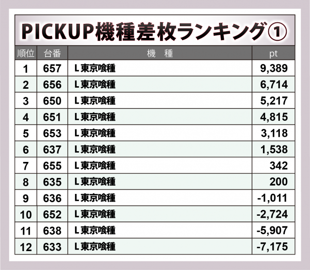 ここからは、入手した出玉データと撮影写真により当日の優秀台を明らかにしていく。