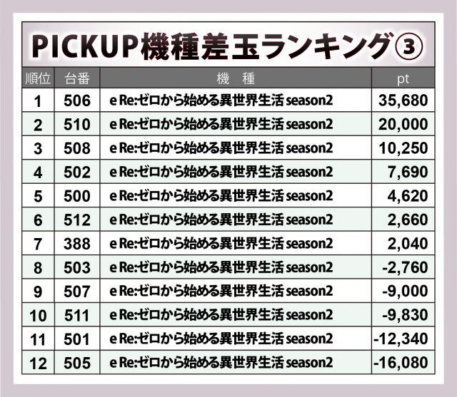 『e Re:ゼロから始める異世界生活 season2』では+35,700個弱・+20,000個超・+10,300個弱が1台ずつとなった。