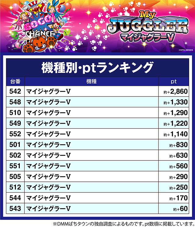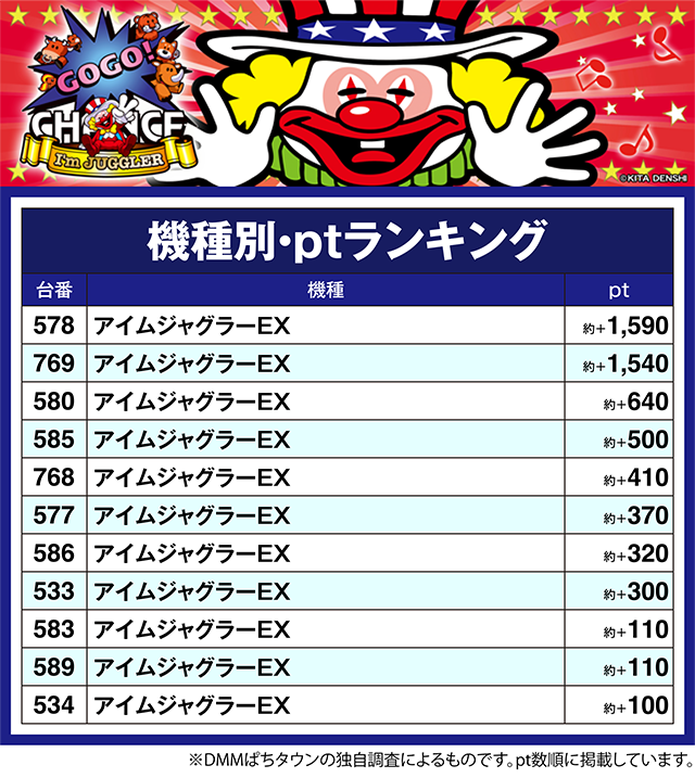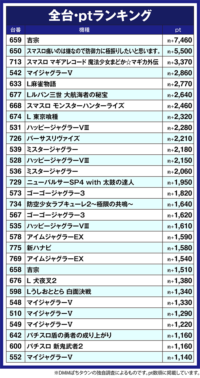 「ミスタージャグラー」も2台が約+2,000ptオーバー。
