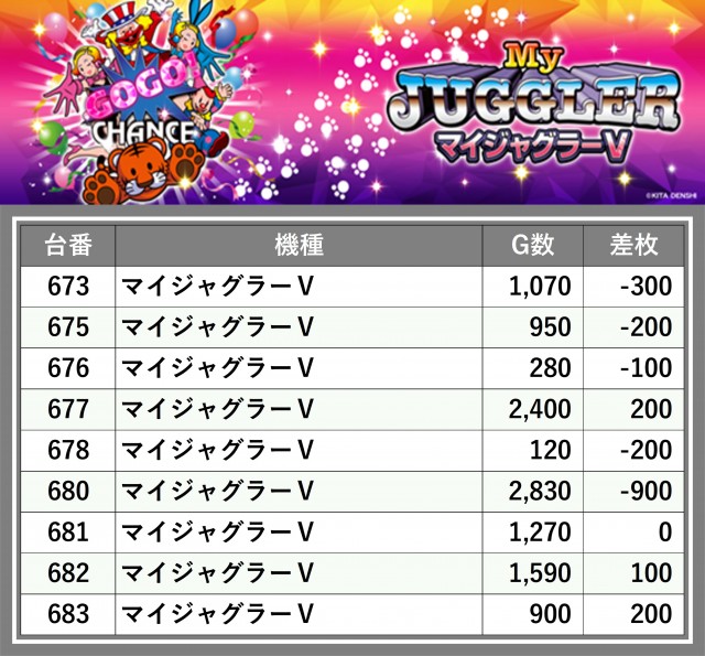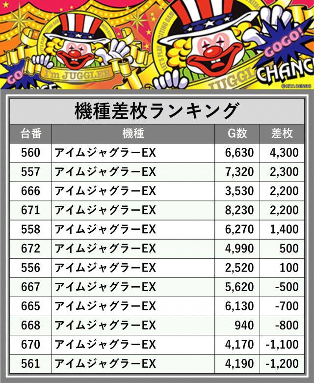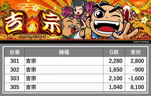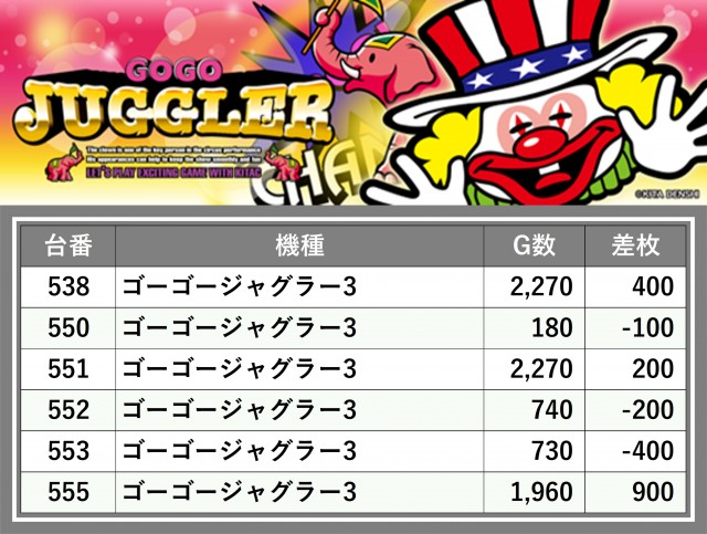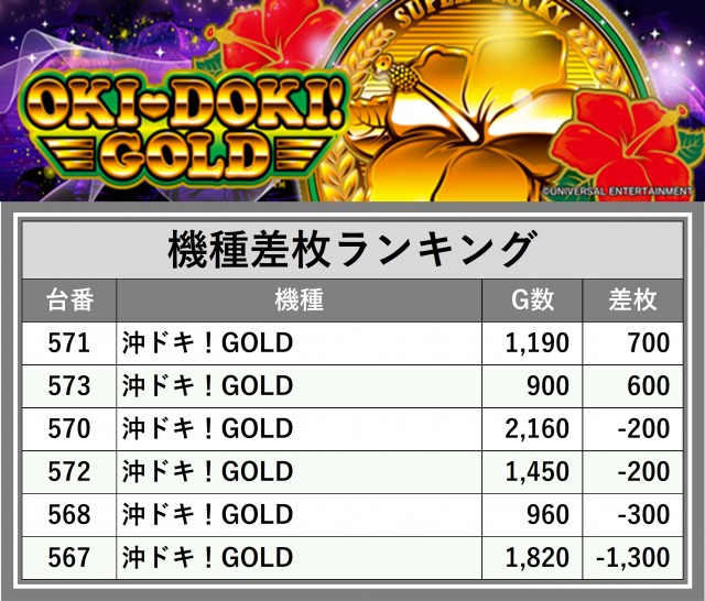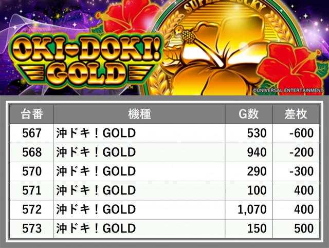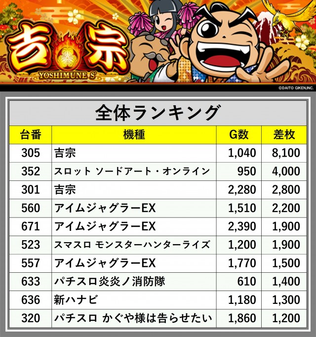 厳選された取材対象機種をはじめ、その他スロット全体から好記録が飛び出した!プレイヤーが楽しんだ1日を下記データにて振り返ってみて欲しい。