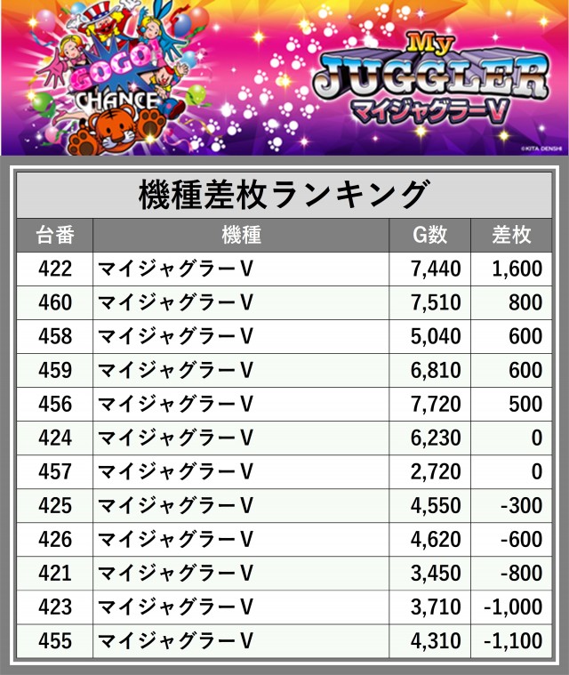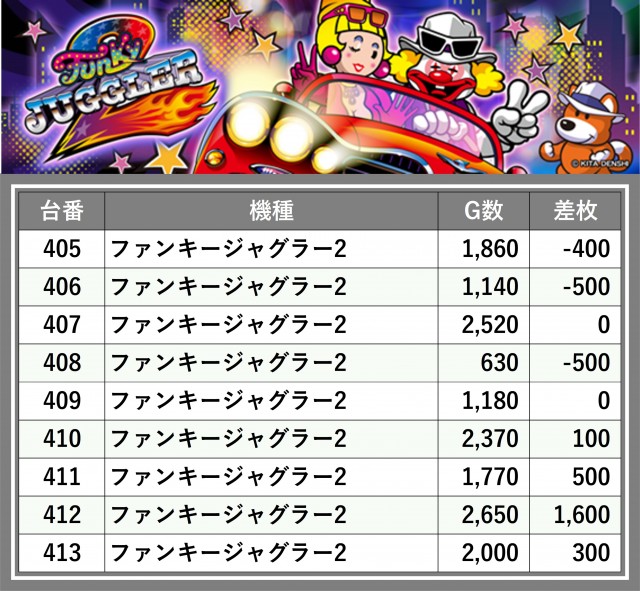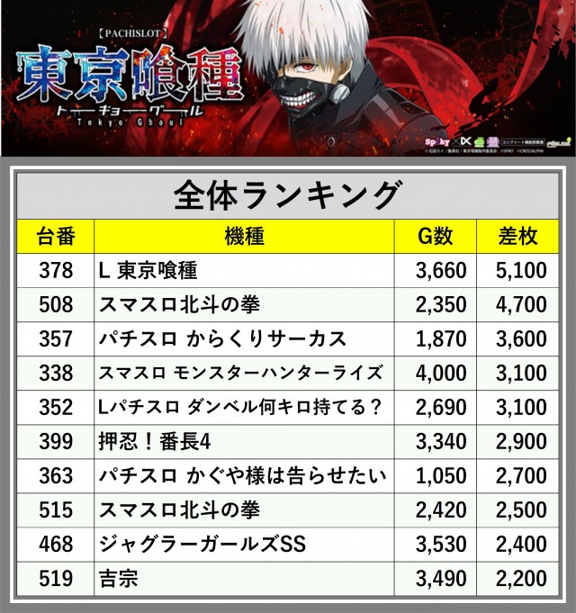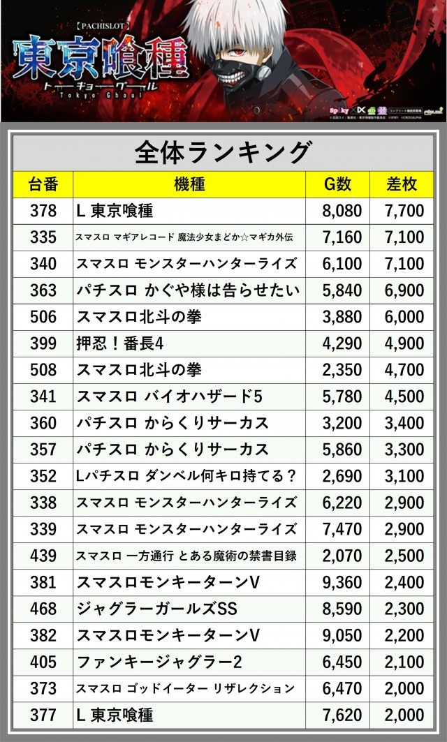 厳選された取材対象機種をはじめ、その他スロット全体から好記録が飛び出した!プレイヤーが楽しんだ1日を下記データにて振り返ってみて欲しい。