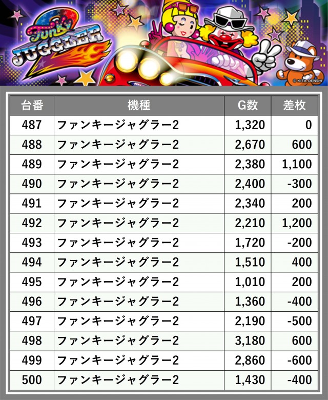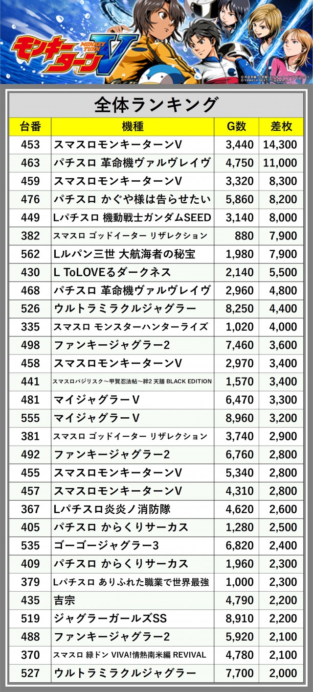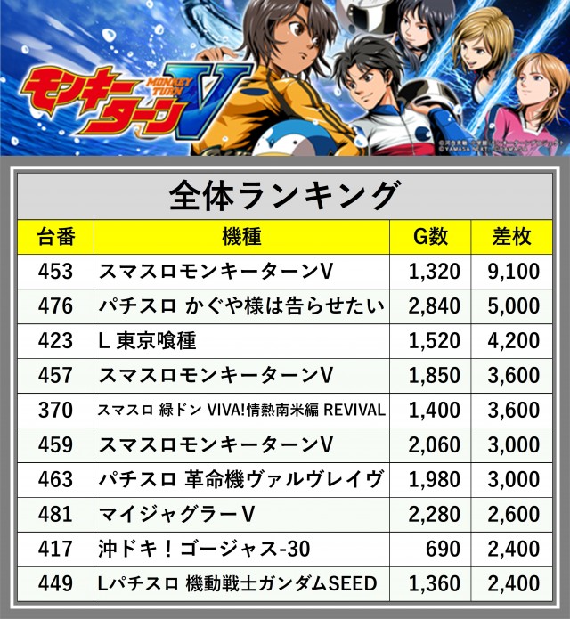 ※差枚数順に掲載しています