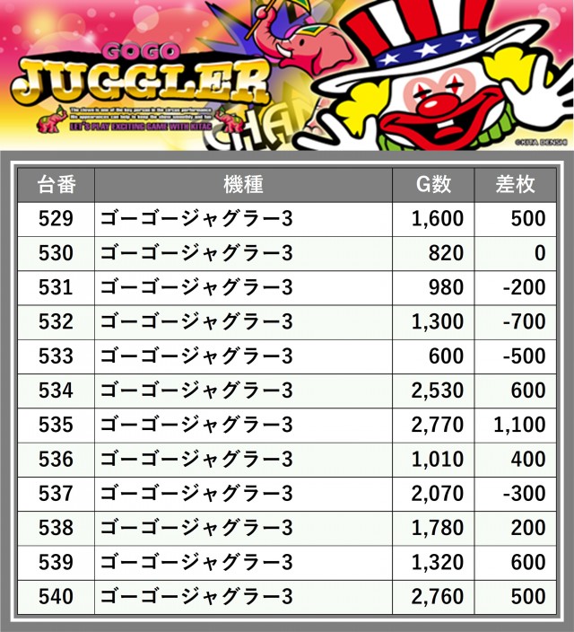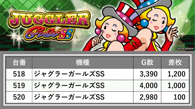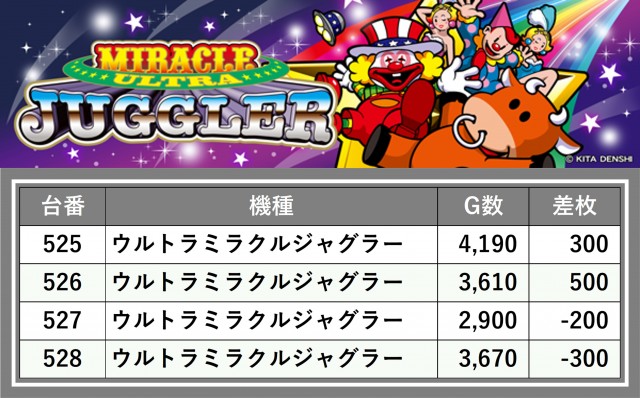 厳選された取材対象機種をはじめ、その他スロット全体から好記録が飛び出した!プレイヤーが楽しんだ1日を下記データにて振り返ってみて欲しい。