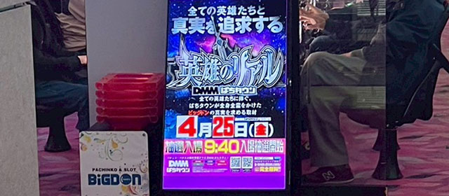 4月25日、「ビッグドン」にて「英雄のリアル」が実施された。当日は26人のファンが集まり、今月二度目となる英雄参戦に心を躍らせていたのが印象に残る。同店もまたGW前に勢いに乗ろうと意気込んでおり、開店前から盛り上がりの予感が漂っていた。果たしてどのような1日になったのか…さっそく詳細データとともに店内の様子をお伝えしよう!