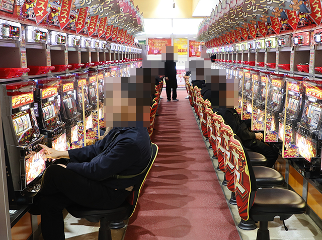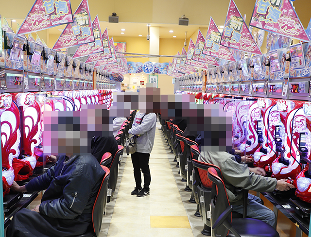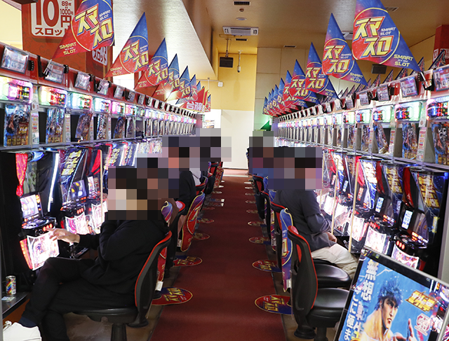 店内をみてみると、パチスロとパチンコの両方に、プレイヤーの笑顔が広がっていた。
