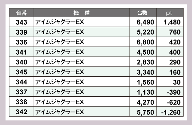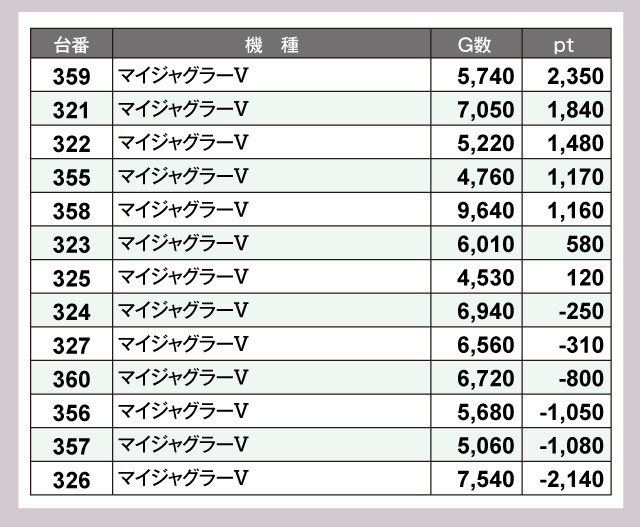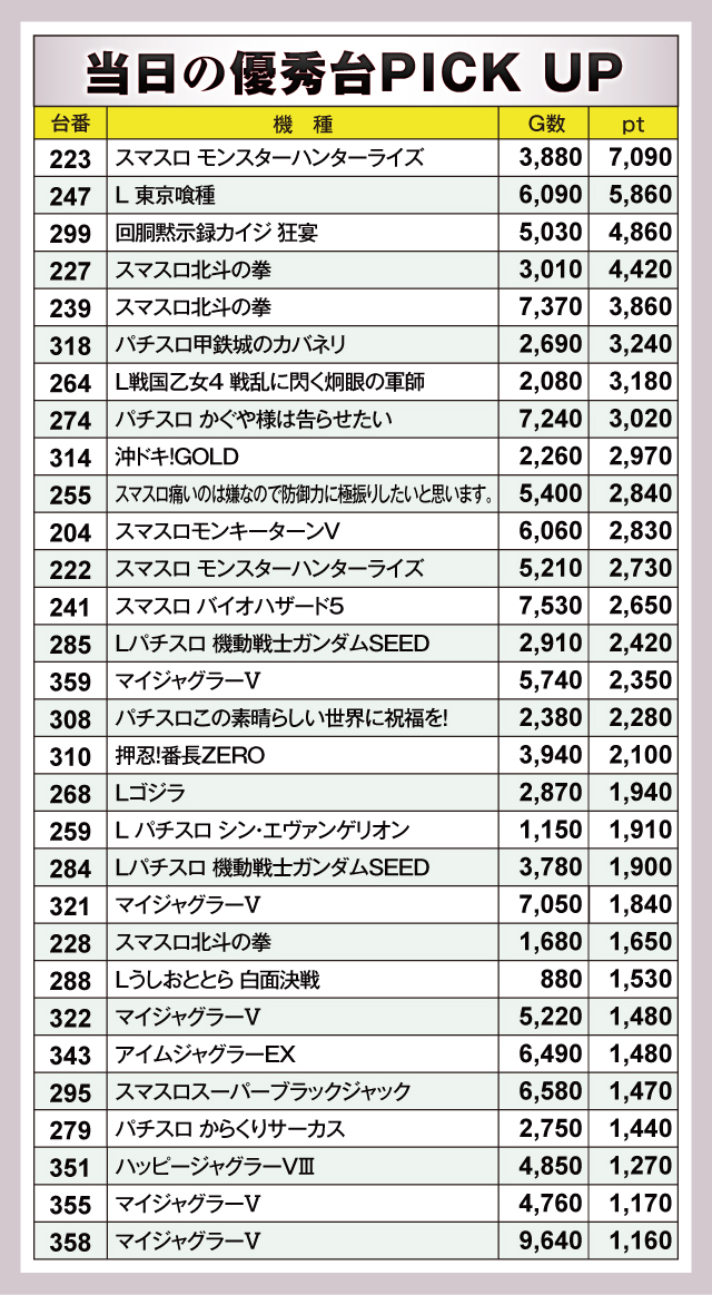 ※差枚pt順に掲載しています。