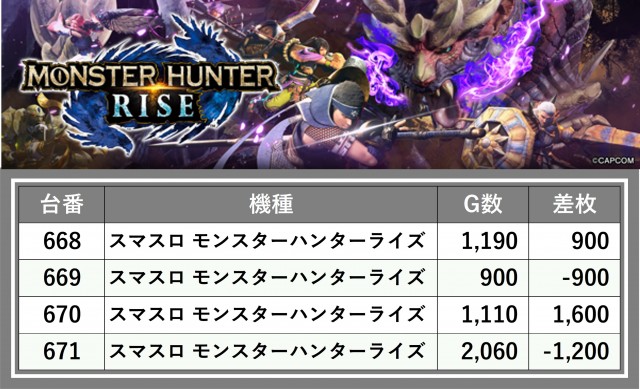 厳選された取材対象機種をはじめ、その他スロット全体から好記録が飛び出した!プレイヤーが楽しんだ1日を下記データにて振り返ってみて欲しい。