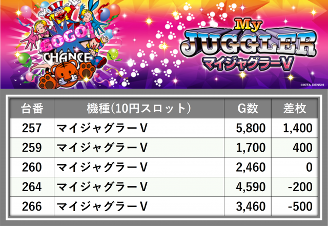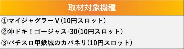 厳選された取材対象機種をはじめ、その他スロット全体から好記録が飛び出した!プレイヤーが楽しんだ1日を下記データにて振り返ってみて欲しい。