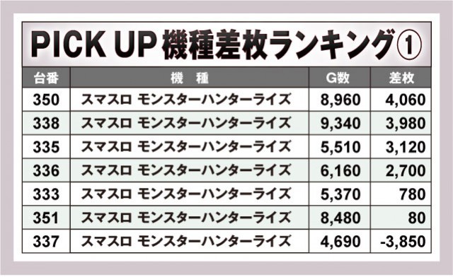 それ以外もこの後のピックアップでも紹介する『スマスロ モンスターハンターライズ』や『マイジャグラーⅤ』などが目立つランキングとなった。