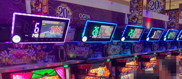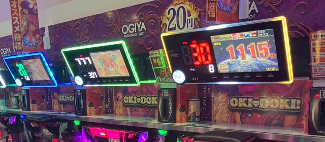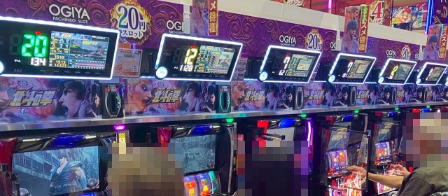 最初に向かったのは20スロコーナー。同店の名物と言えるのが沖スロのシマだ。