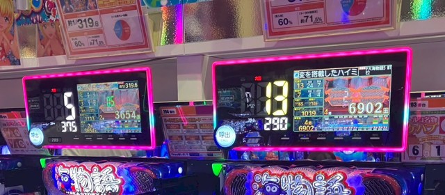 入店したのは午後の早い時間帯だったが、『沖ドキ!BLACK』を筆頭に『ドラゴンハナハナ~閃光~ 30』『ハナハナホウオウ~天翔~-30』と、ボーナス回数の多さが光った。