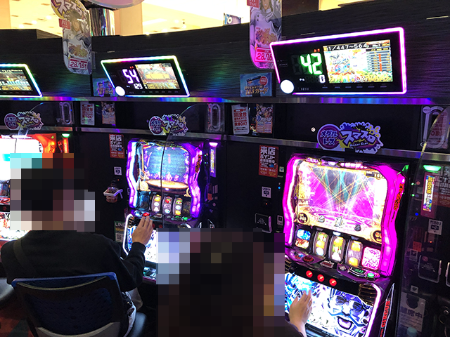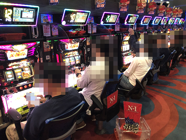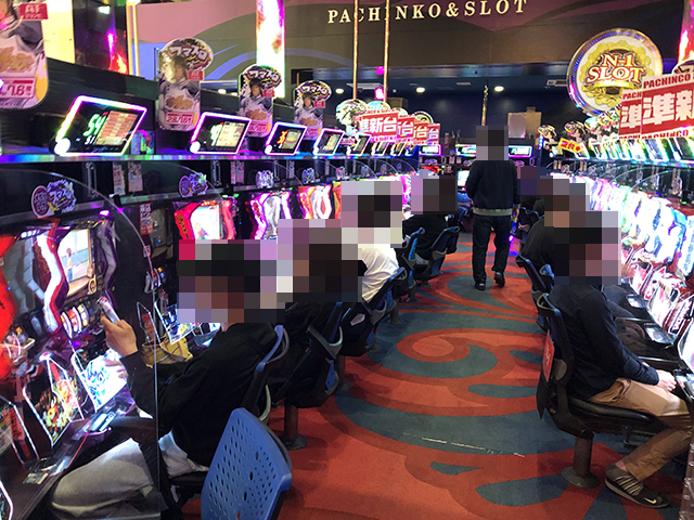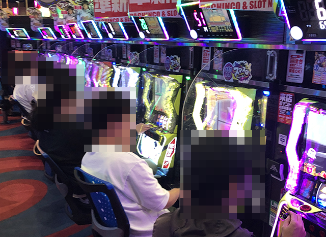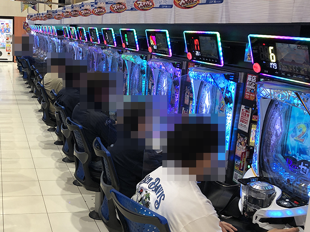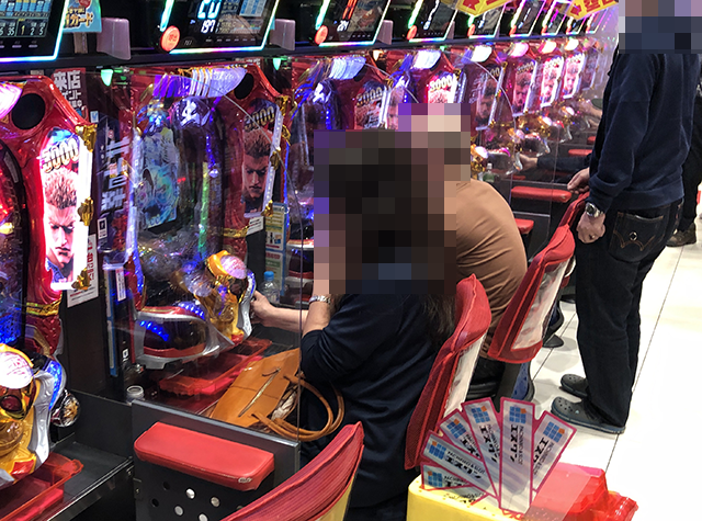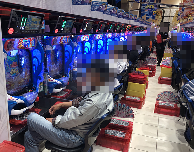 取材時に、5箱以上や3箱以上の持ち玉を使い、うれしそうに遊技をおこなっている姿が並んでいた。