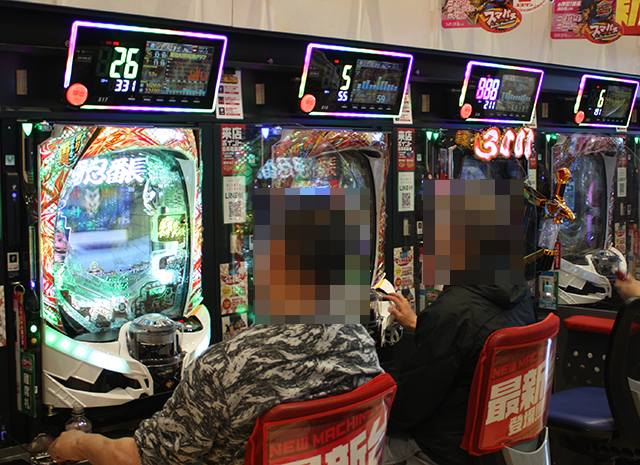 大箱7箱以上や大箱6箱以上、大箱3箱以上の持ち玉を使って遊技をおこなっている姿があった。