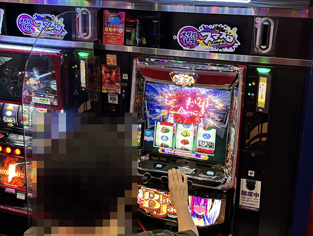ほかにも、「Lパチスロ 機動戦士ガンダムSEED」や「スマスロスーパーブラックジャック」などで、遊技を満喫しているような姿をみられた。