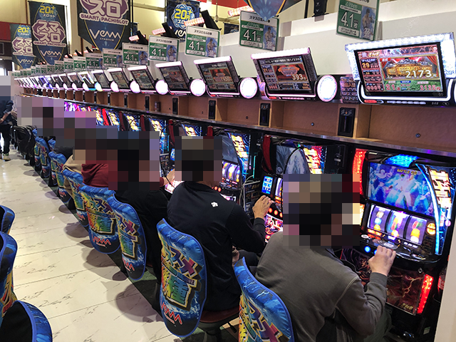 「スマスロ北斗の拳」などにも、うれしそうに遊技をおこなっているプレイヤーが並んでいた。