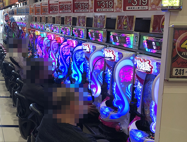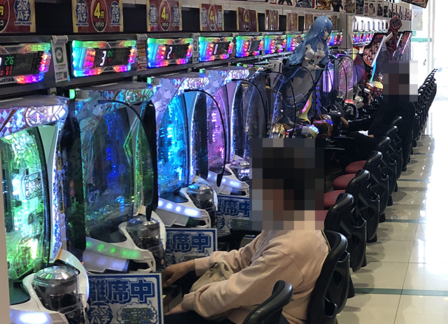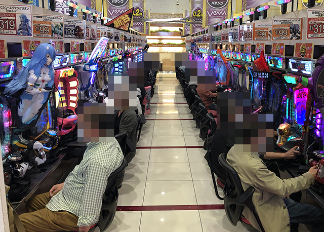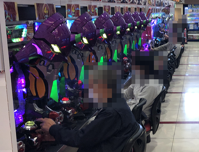 1円パチンコの海物語シリーズや0.2円パチンコの「ぱちんこ シン・エヴァンゲリオン Type レイ」など、あちこちで華やかなシーンがみられた。