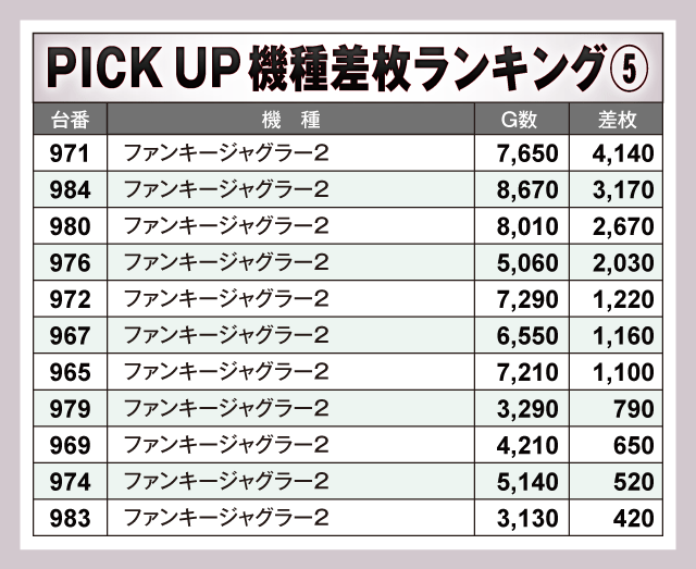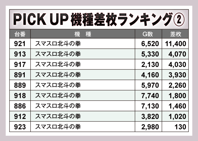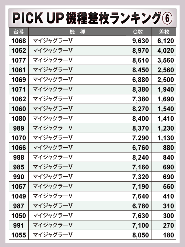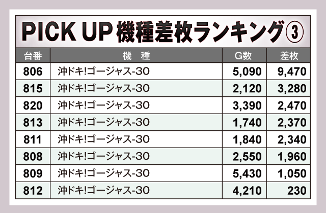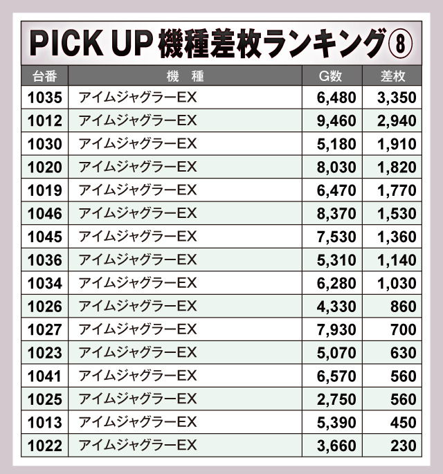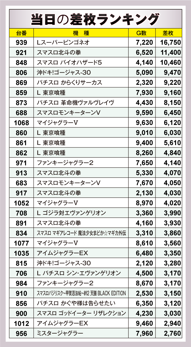 ※差枚数順に掲載しています。