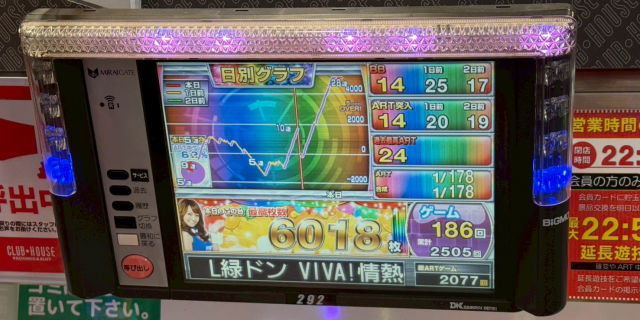 この日、最もプレイヤーの注目を集めたのが、導入間もない新台の『スマスロ 緑ドン VIVA!情熱南米編 REVIVAL』で、292番台が+10,260枚を叩き出しランキングトップに。また、その他の機種では『パチスロ かぐや様は告らせたい』で+5,250枚、『スマスロ ゴッドイーター リザレクション』で+4,900枚など、人気のスマスロを中心に多数のハイスコアが確認されている。