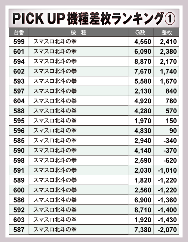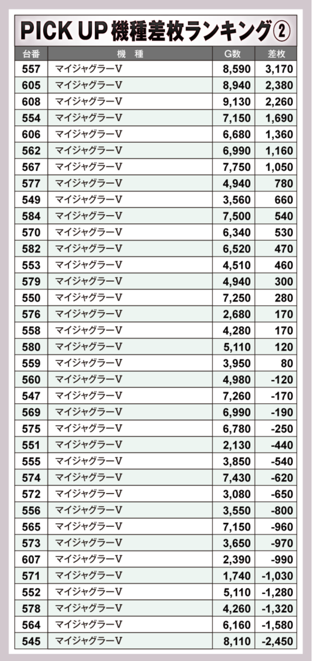 ※差枚数順に掲載しています。