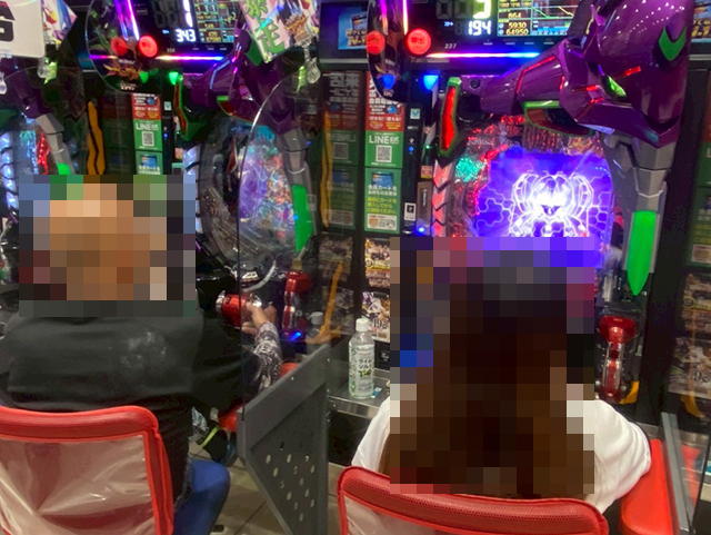 ほかにも、「新世紀エヴァンゲリオン~未来への咆哮~」や「eフィーバーからくりサーカス2 魔王ver.」などで、うれしそうに遊技をおこなっている姿がみられた。