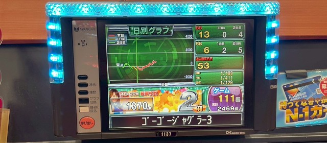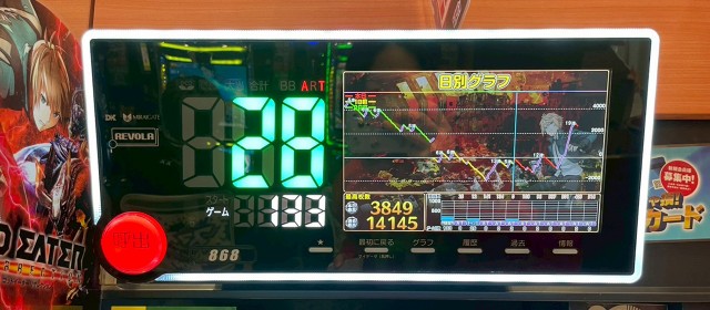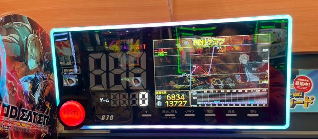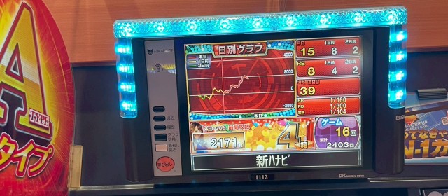 当調査は「週のラストを飾る土日営業のリアル」を探ることを命題としている。歴代回では好出玉の数々をお伝えしてきたが、上写真を見ると、再度ハイスコアが飛び出したようだ。