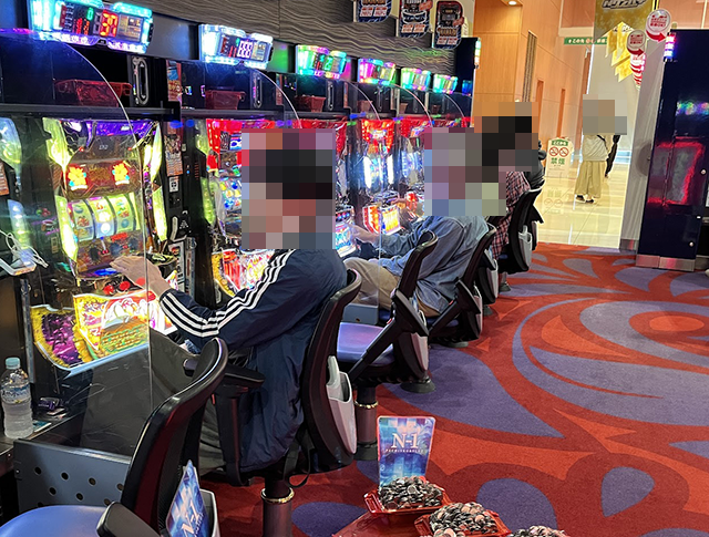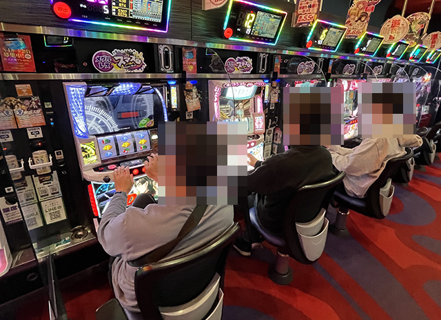 さまざまな機種で、プレイヤーはじっくりと遊技を楽しんでいる様子であった。