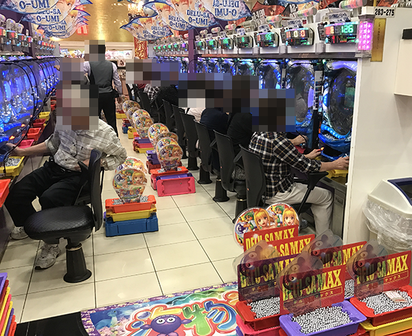 パチンコ、パチスロともに盛り上がっていた「デルーサマックス西成本店」。プレイヤーたちのイキイキとした表情からは、有意義な時間を過ごせていることも伝わってきた。