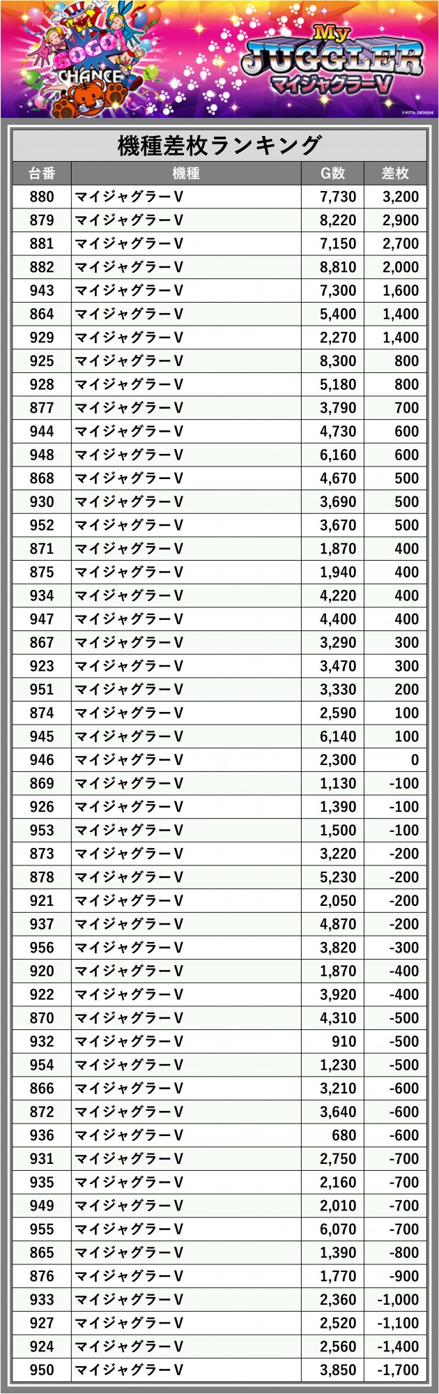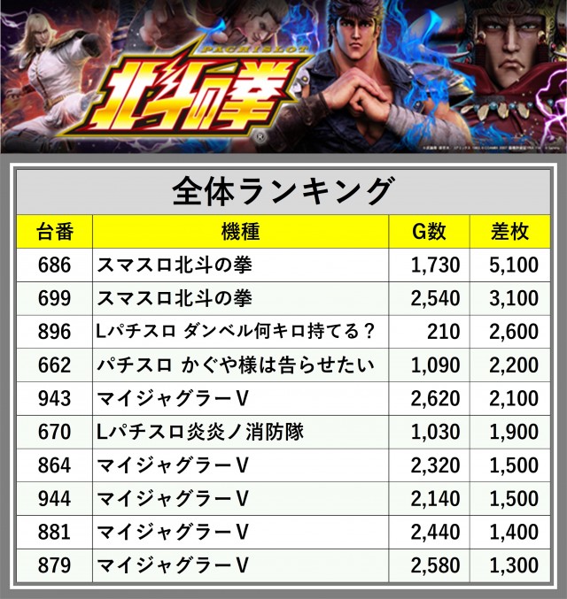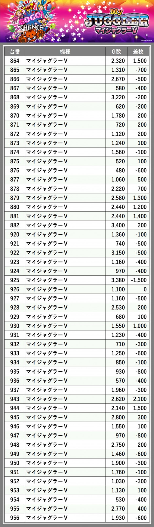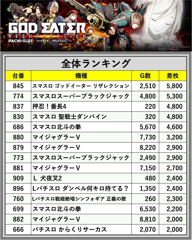 厳選された取材対象機種をはじめ、その他スロット全体から好記録が飛び出した!プレイヤーが楽しんだ1日を下記データにて振り返ってみて欲しい。