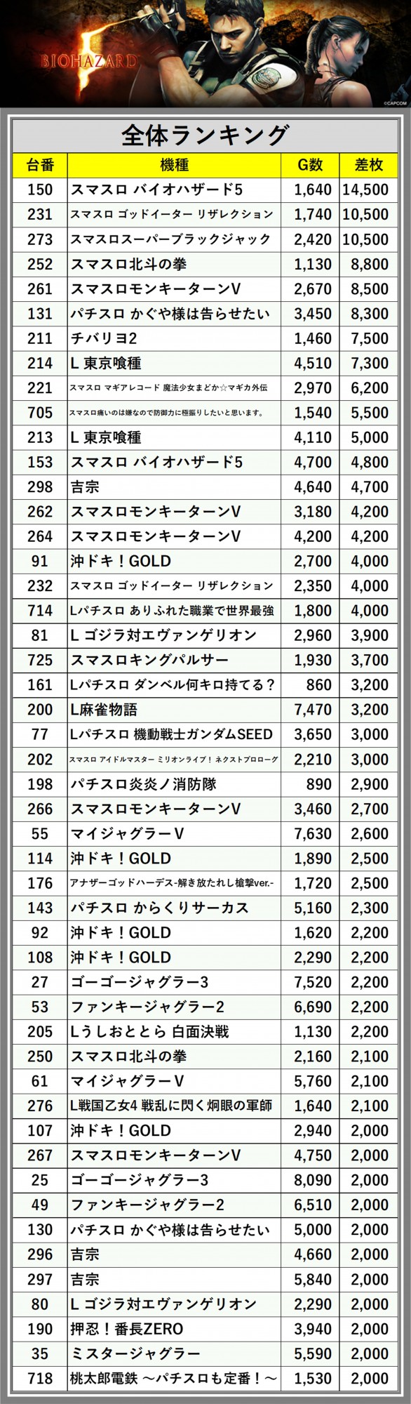 厳選された取材対象機種をはじめ、その他スロット全体から好記録が飛び出した!プレイヤーが楽しんだ1日を下記データにて振り返ってみて欲しい。