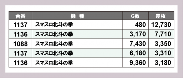 ※差枚数順に掲載しています