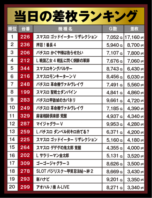 【差枚ランキング&注目機種】SAP流山(千葉県)