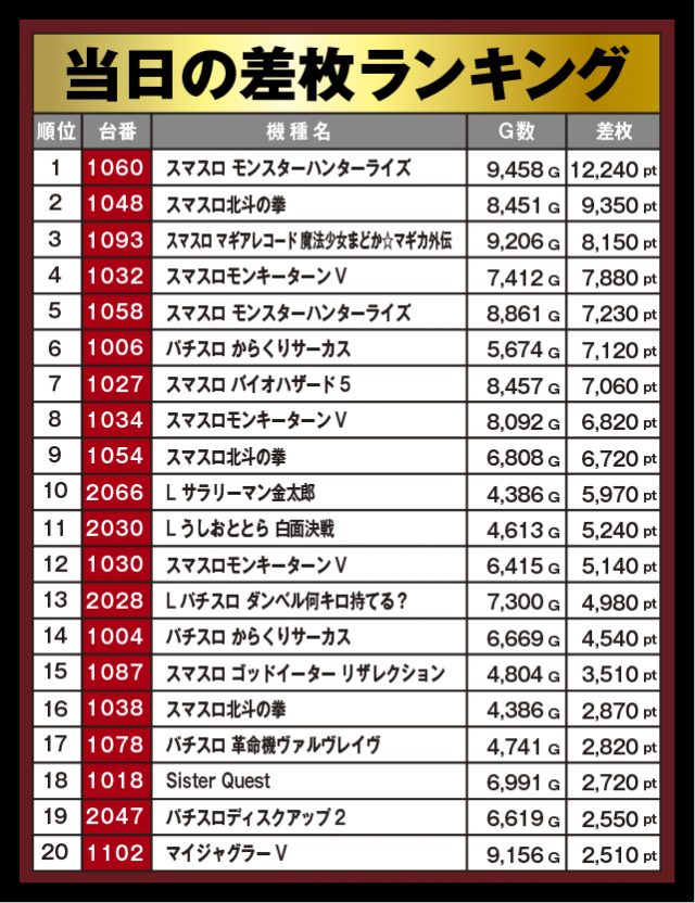 ※差枚順に掲載しています