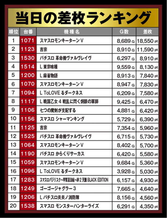 【差枚ランキング&注目機種】SAP草加店(埼玉県)