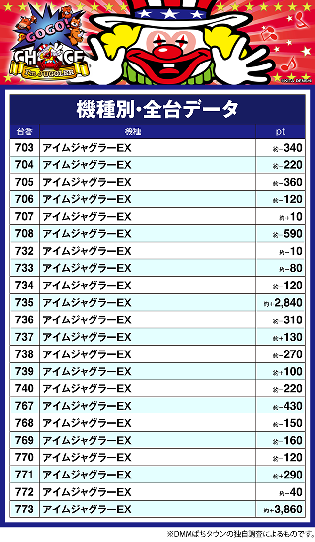 「アイムジャグラーEX」の773番台が約+3,800ptオーバー!!