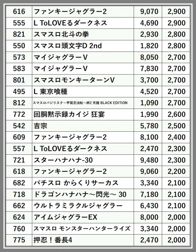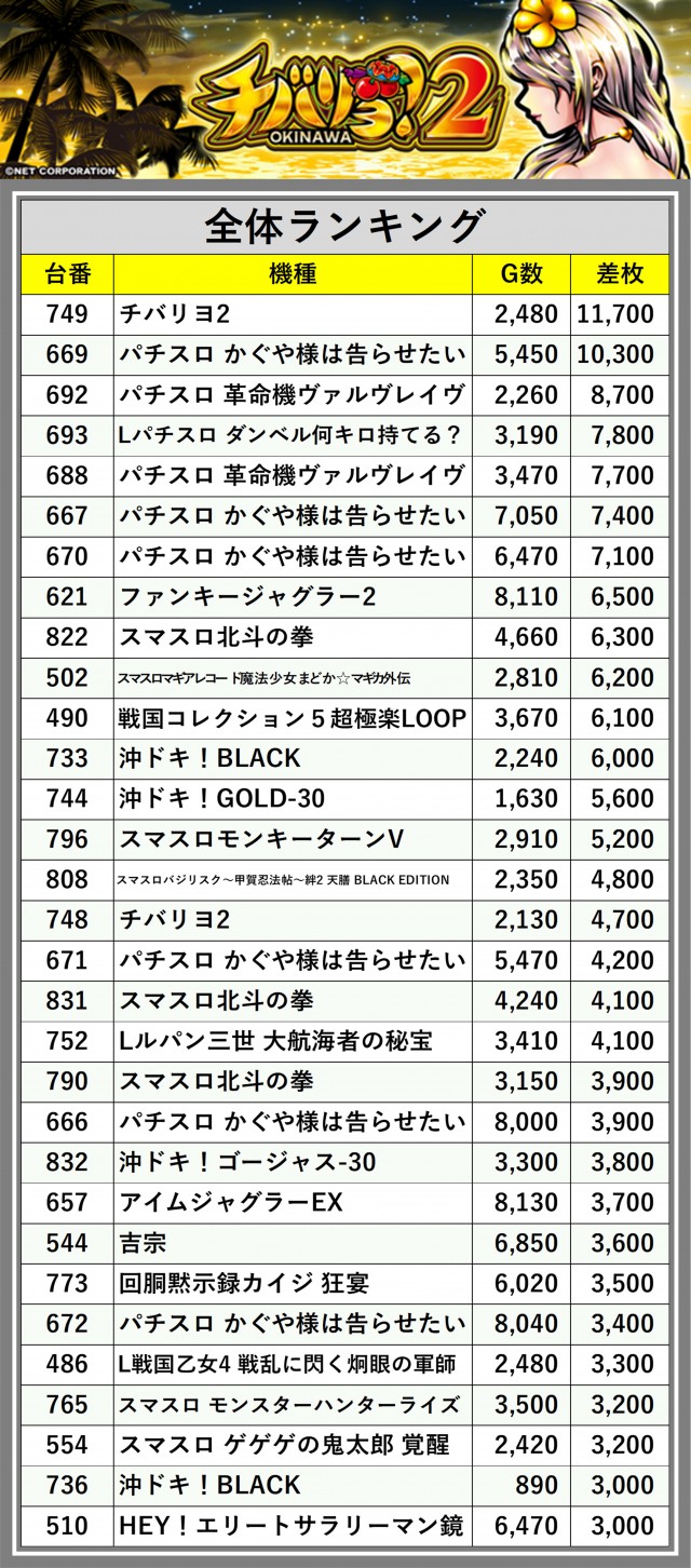 厳選された取材対象機種をはじめ、その他スロット全体から好記録が飛び出した!プレイヤーが楽しんだ1日を下記データにて振り返ってみて欲しい。