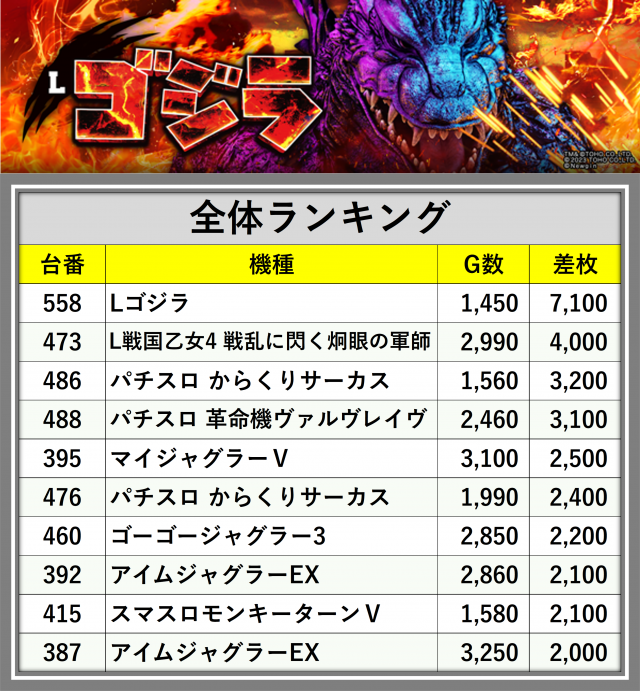 ※差枚数順に掲載しています