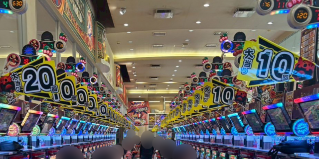 今回の全店共通PICK UP機種は『スマスロスーパーブラックジャック』。全店舗の総台数31台中21台がプラス差枚で実戦を終え、平均差枚は+1,900pt超となっているだけに、各店舗のシマ内には常にファンの笑顔と活気が溢れ返っていた。