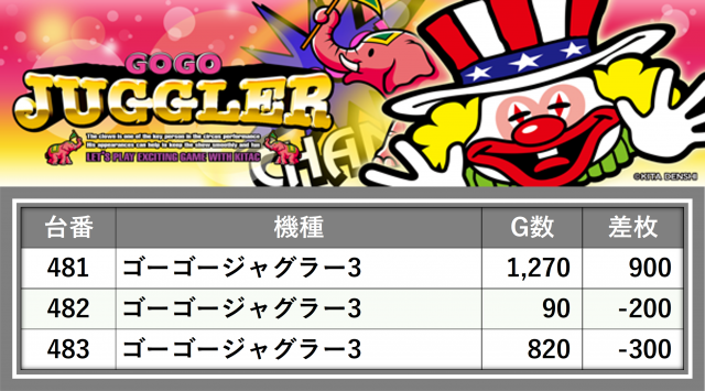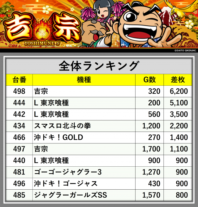 厳選された取材対象機種をはじめ、その他スロット全体から好記録が飛び出した!プレイヤーが楽しんだ1日を下記データにて振り返ってみて欲しい。