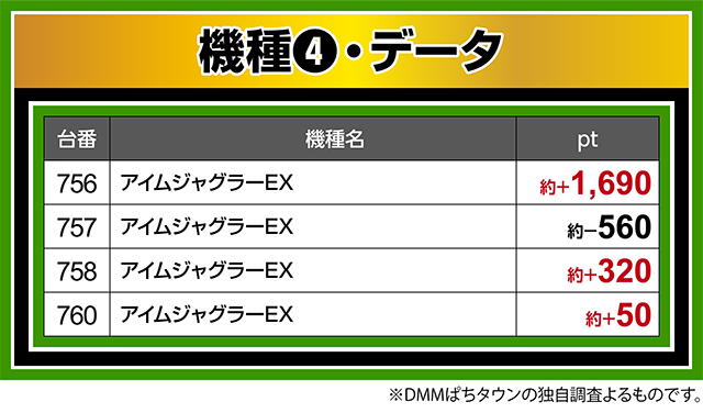 『アイムジャグラーEX』もにぎわっており、756番台が約+1,690pt。