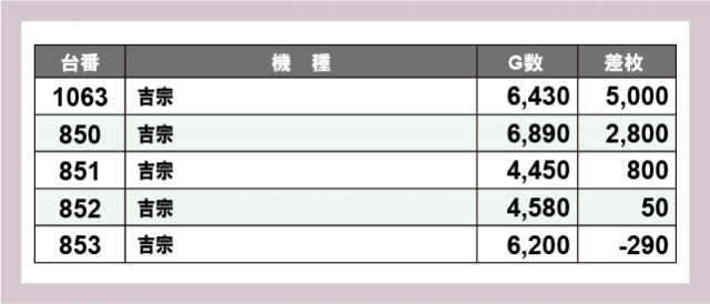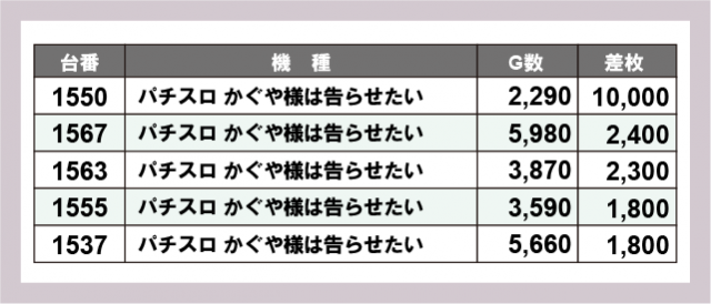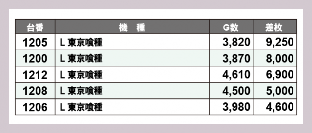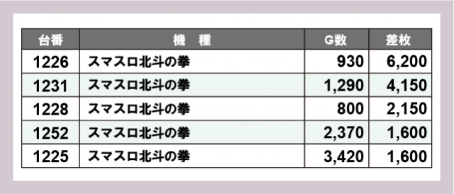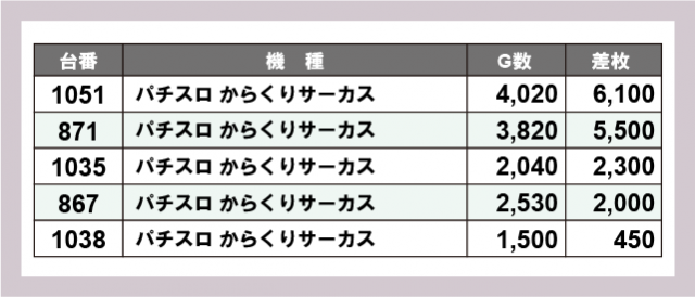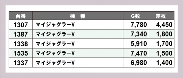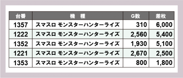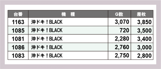 ※差枚数順に掲載しています