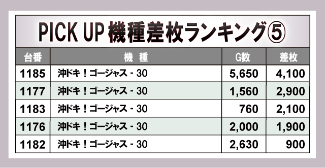 上表の優秀機種は高い活気と熱気を放っており、遊技したファンは好感触を得ていたのは間違いない。またスマスロ勢が活躍する傍ら、しっかりとメダル機の『マイジャグラーⅤ』『沖ドキ!ゴージャス-30』『ゴーゴージャグラー3』にも大当りを積み重ねている台を確認でき、いずれもコンスタントなボーナス当選を披露していたことから、その高いパフォーマンスには脱帽せざるを得ない。