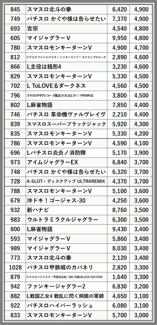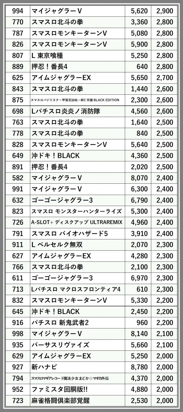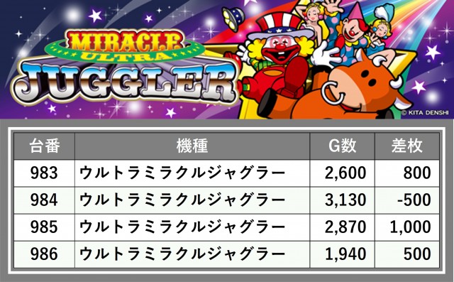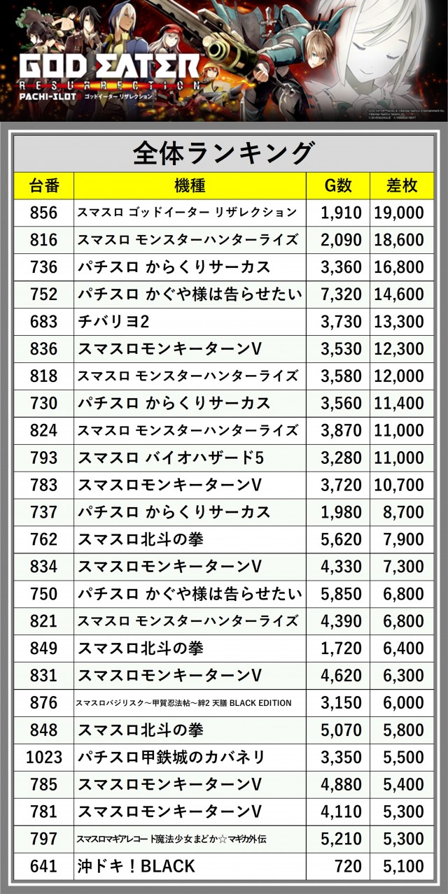 厳選された取材対象機種をはじめ、その他スロット全体から好記録が飛び出した!プレイヤーが楽しんだ1日を下記データにて振り返ってみて欲しい。