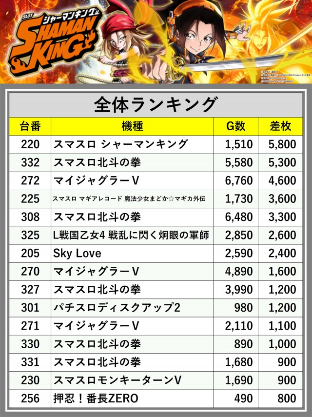 厳選された取材対象機種をはじめ、その他スロット全体から好記録が飛び出した!プレイヤーが楽しんだ1日を下記データにて振り返ってみて欲しい。