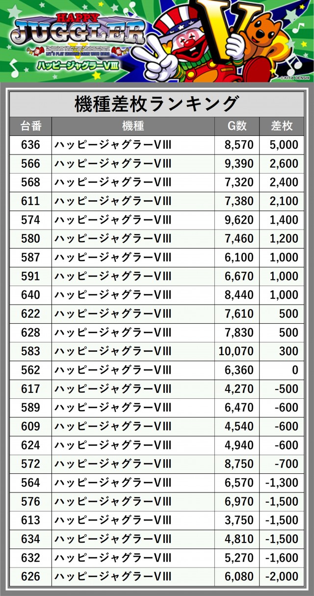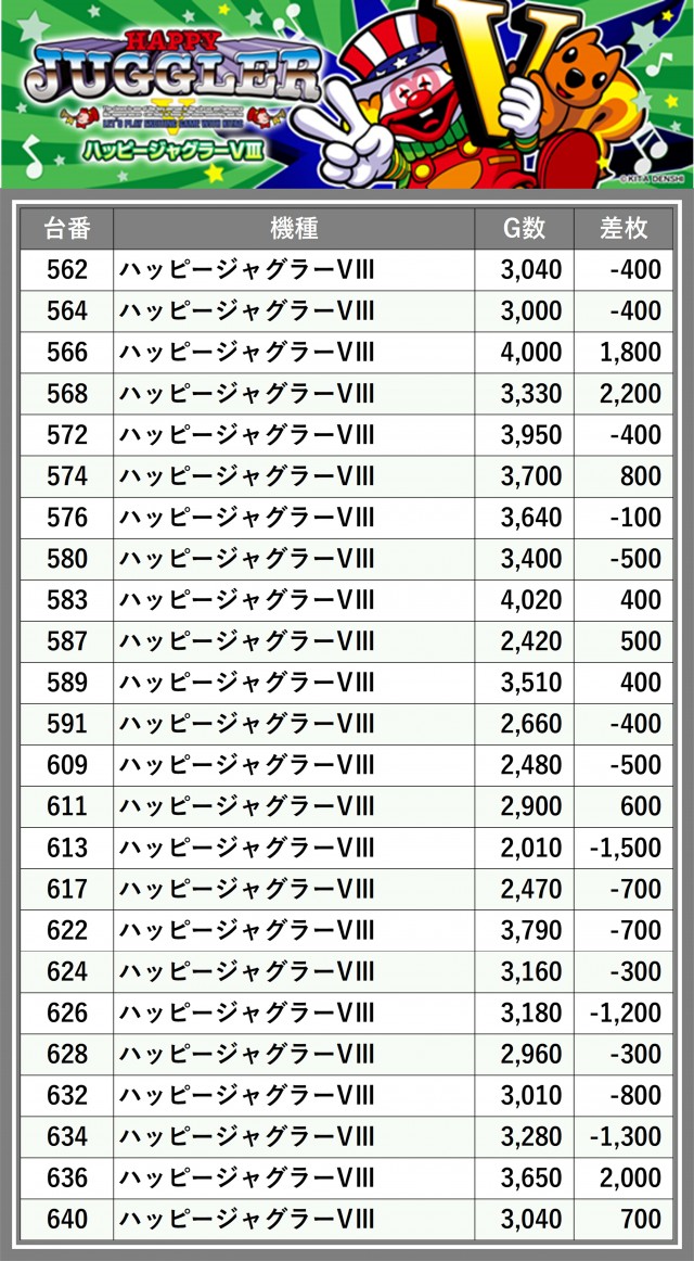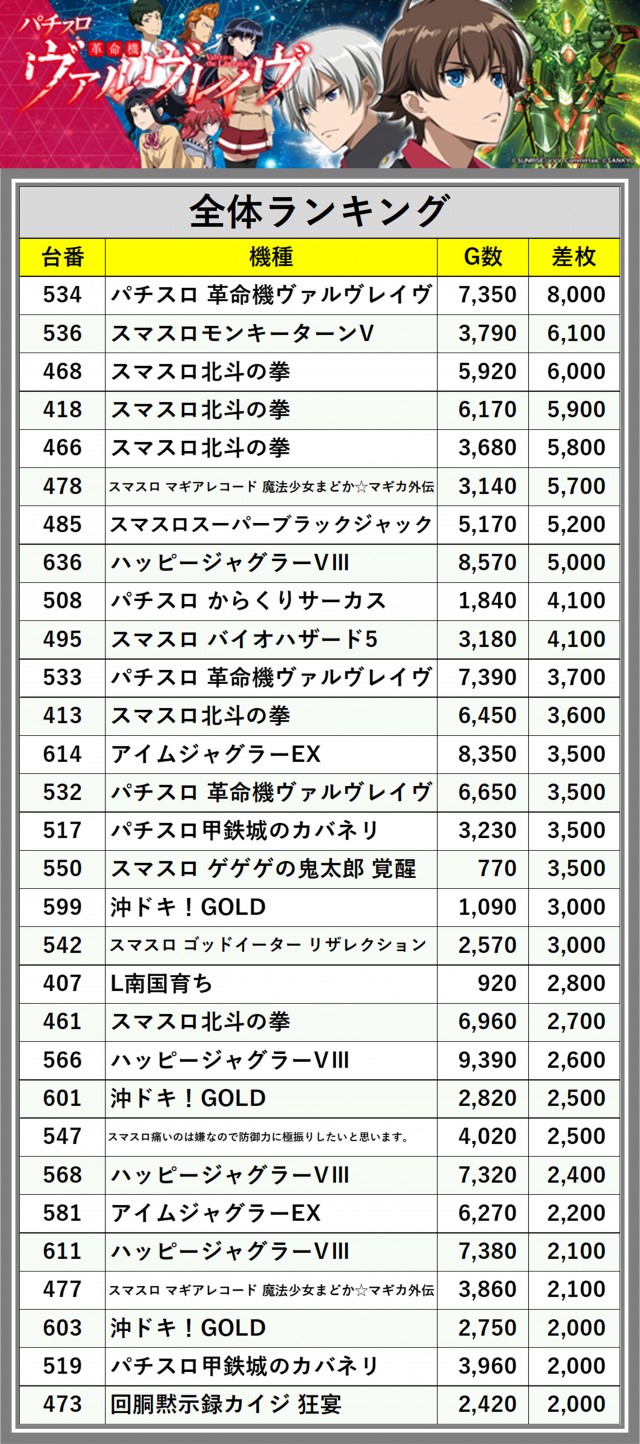 厳選された取材対象機種をはじめ、その他スロット全体から好記録が飛び出した!プレイヤーが楽しんだ1日を下記データにて振り返ってみて欲しい。