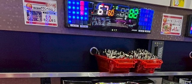 また直前で掲載した写真の通り[1000円/180枚]スロにも多くのファンで賑わい、ドル箱使用台もいくつか目に付いたのは特筆しておきたい。