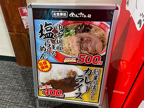 同店はメニュー数が豊富な食事処を完備。休憩時間などを利用して、空腹を満たすことができる。