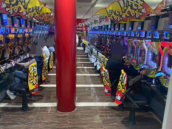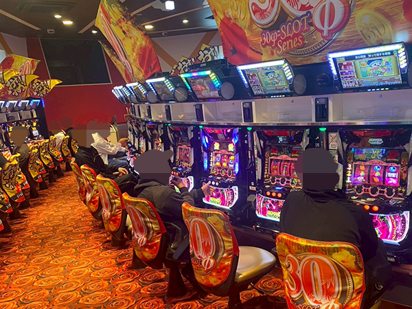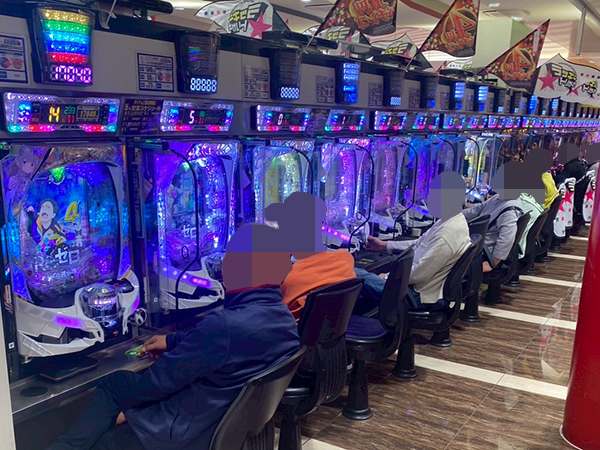 取材時は既に多くのプレイヤーが集結し、パチンコ・パチスロを問わずにぎやかな状況となっていた。