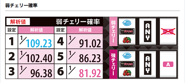 「SLOT魔法少女まどか☆マギカ」においては、スイカからのマジカルチャレンジ突入率と弱チェリー確率に設定差が存在。