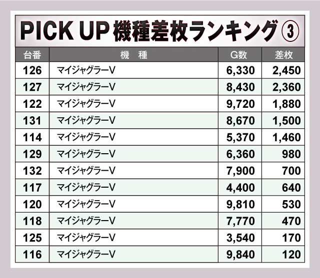 ※差枚数順に掲載しています。